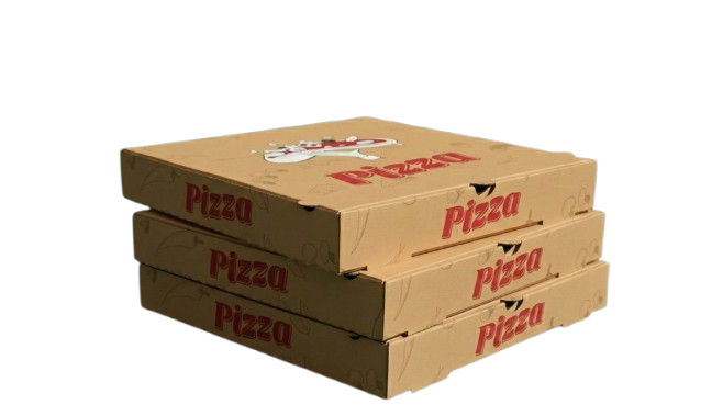 Premium custom-printed pizza boxes made from food-grade cardboard. Available in all standard pizza sizes.